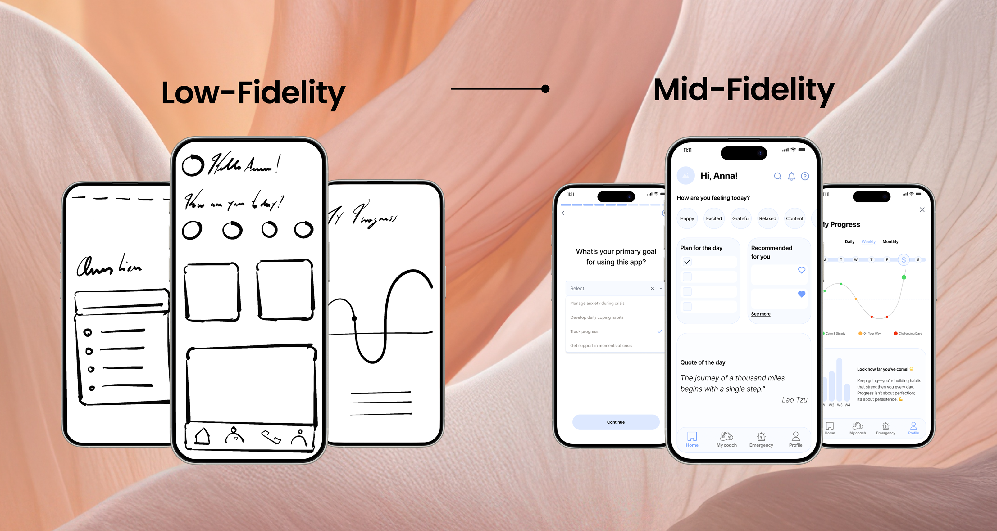Color palette: Every design choice reinforces a sense of calm, support, and mindfulness.