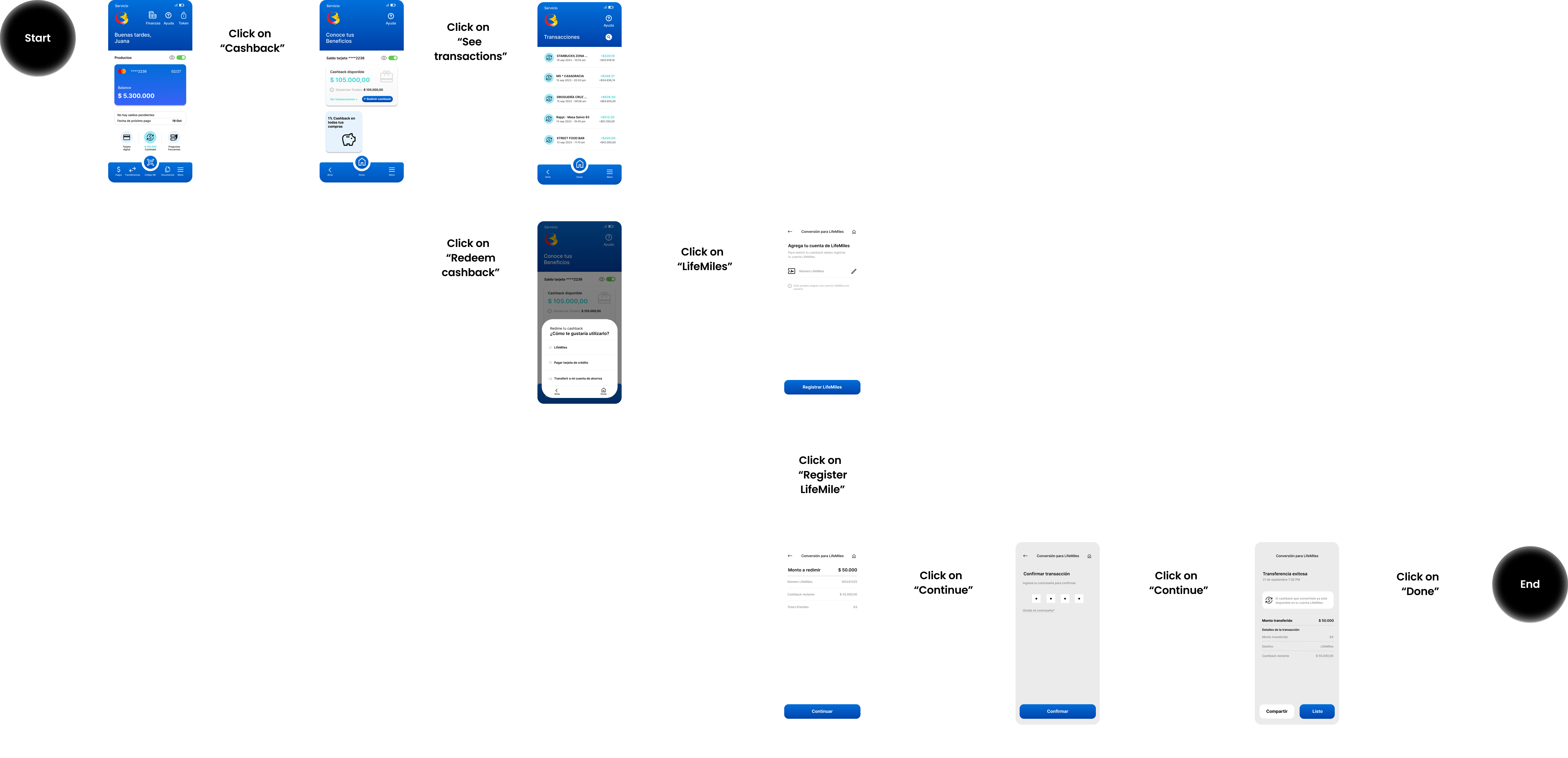 After defining the visual identity, user flows, and interactions, we developed an adaptive financial product for young users, focusing on cashback redemption through LifeMiles. The solution provides easy access to financial rewards, making it simple for users to track and redeem cashback benefits.